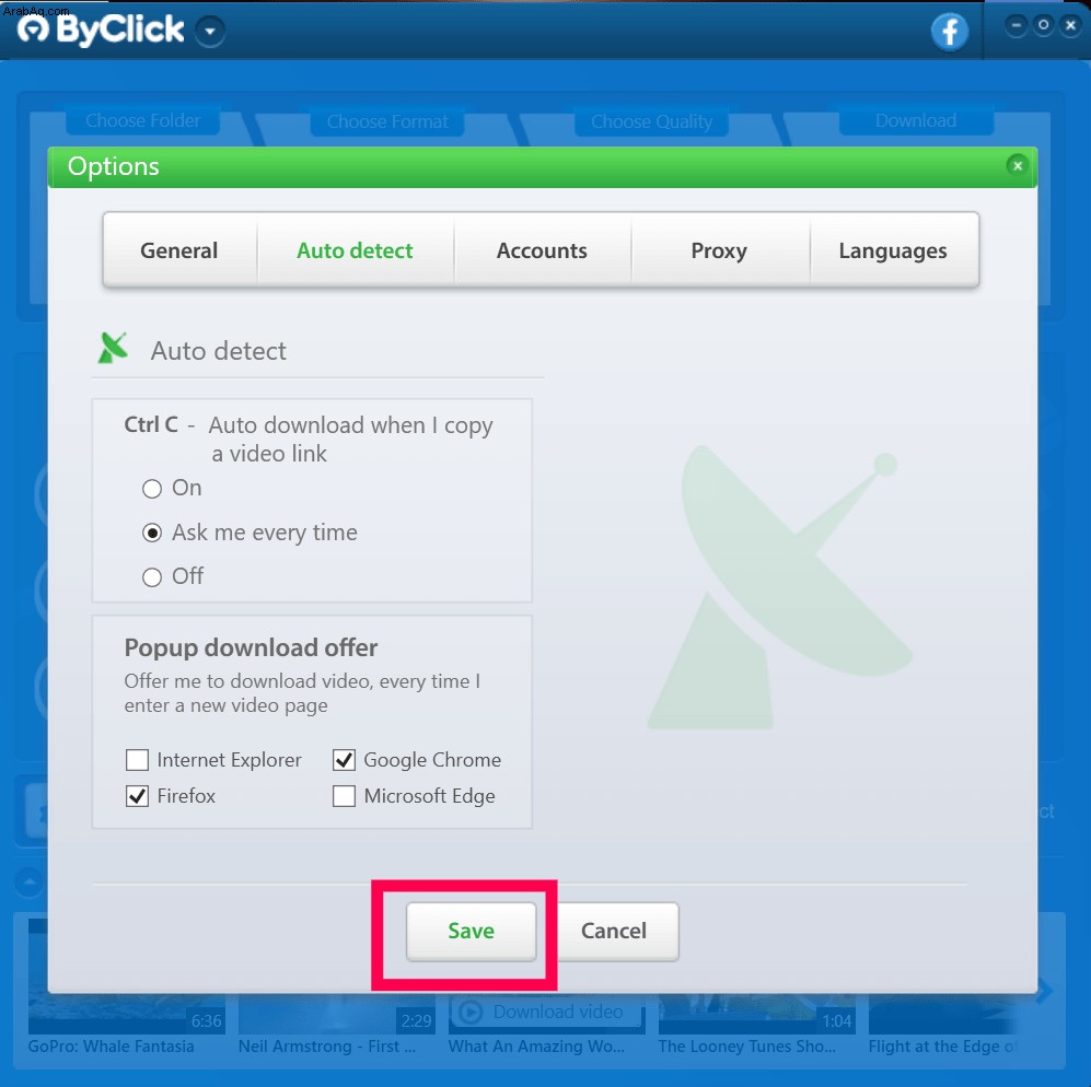 - تأكد من تحديد متصفح الويب الذي تستخدمه. بعد ذلك ، انقر على حفظ .