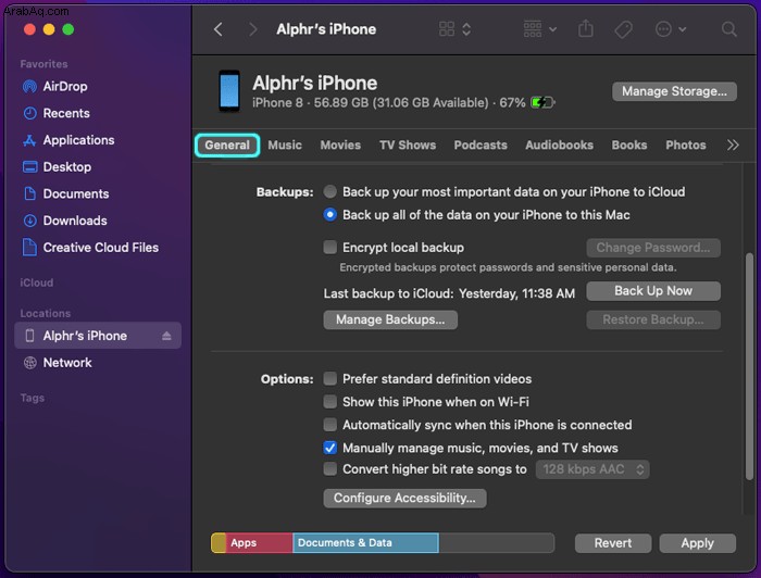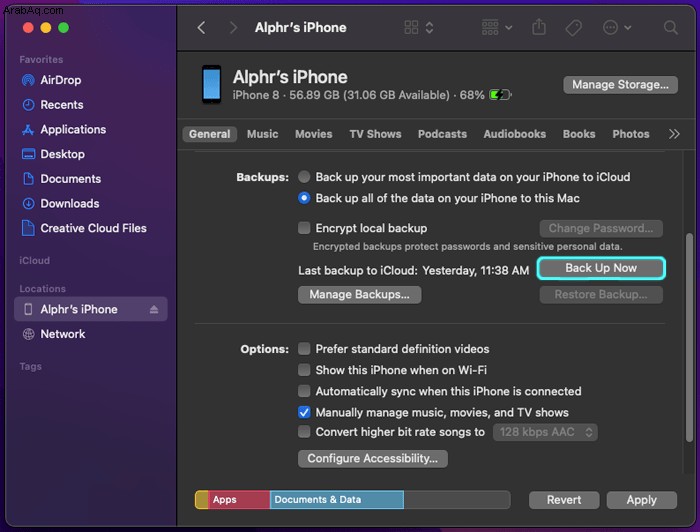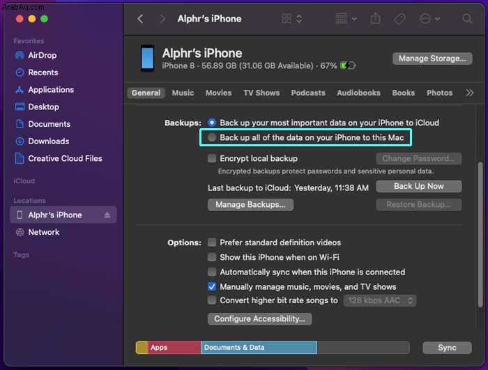 كيفية عمل نسخة احتياطية من iPhone على Mac