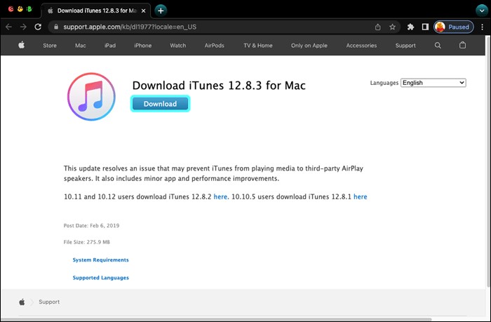 قم بتنزيل iTunes لجهاز Mac الخاص بك.