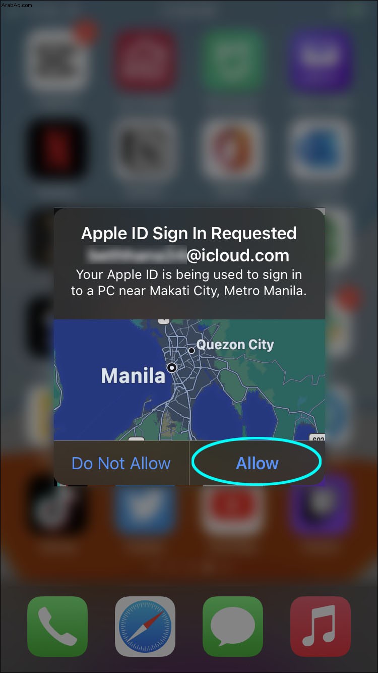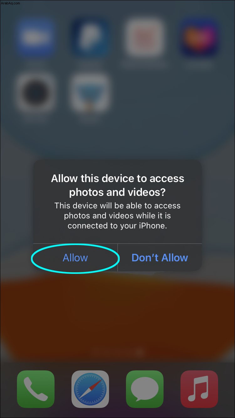 سيعرض جهاز iPhone الخاص بك رسالة تسألك عما إذا كنت ترغب في السماح للجهاز بالوصول إلى هاتفك. اضغط على "سماح".