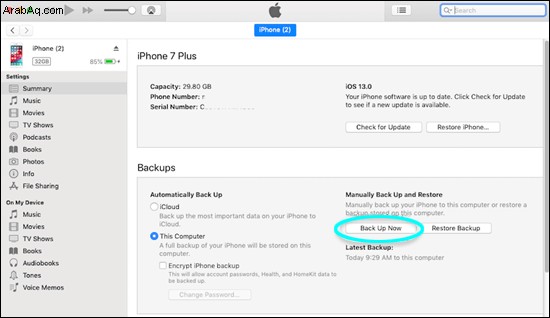 بالنسبة لأجهزة Mac القديمة ، سيتعين عليك تنزيل iTunes لإجراء نسخ احتياطي لملفاتك محليًا. الإجراء للقيام بذلك هو كما يلي: