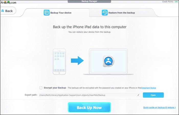 في DearMob ، انقر على "نسخ احتياطي" ثم انقر على "نسخ احتياطي الآن" لعمل نسخة احتياطية كاملة لجميع ملفات iPhone الخاصة بك.