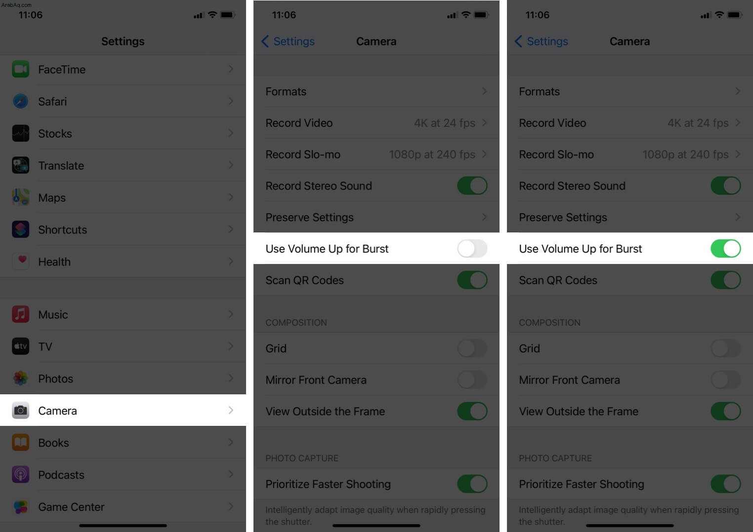 - كيفية استخدام وضع الاندفاع مع زر مستوى الصوت في iPhone 11