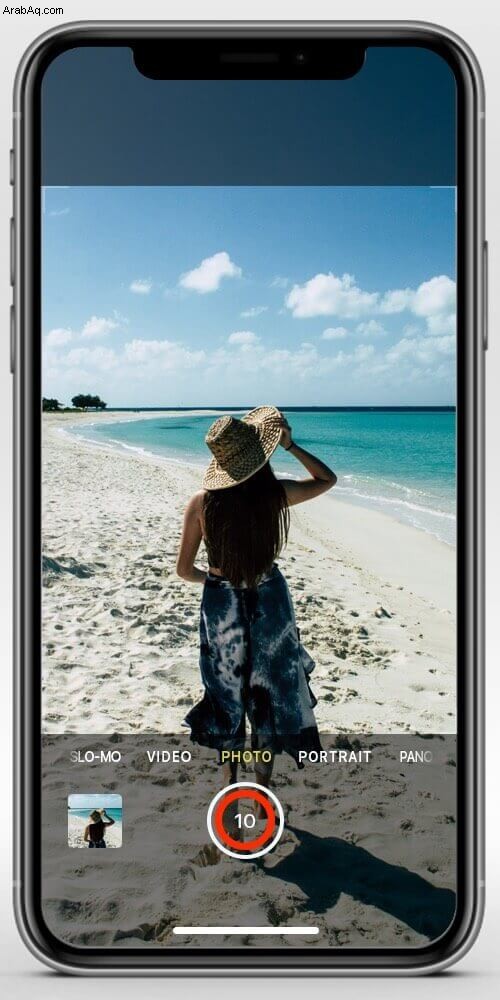 ملاحظة :في سلسلة iPhone 11 ، يجب أن يكون زر رفع الصوت. إذا ضغطت مع الاستمرار على مفتاح خفض مستوى الصوت ، فسيتم تنشيط QuickTake.